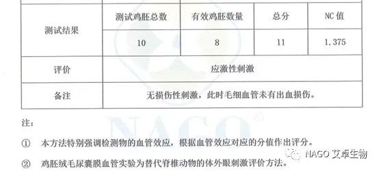 通過雞胚絨毛尿囊膜血管試驗(CAMVA),0.2%凈螨易的NC值僅有1.375,此濃度表現溫和,對毛血細管沒有損傷性刺激。