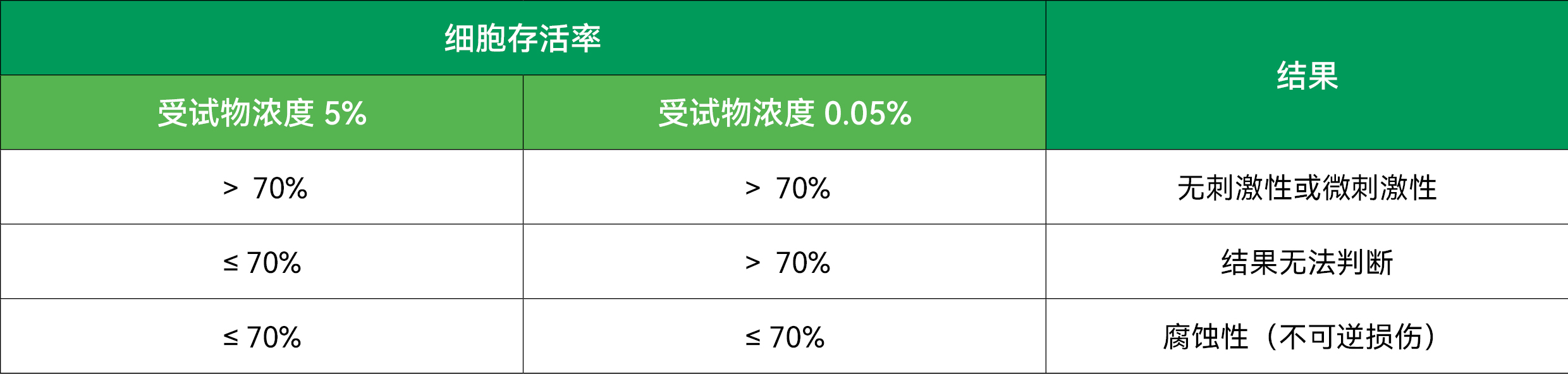 在稀釋受試物時,一個受試物同時稀釋到5%和0.05%兩個濃度,溶劑為生理鹽水,作用5min后,使用MTT法或者CCK-8法測定細胞的吸光度,計算出相應的細胞存活率。判斷標準: