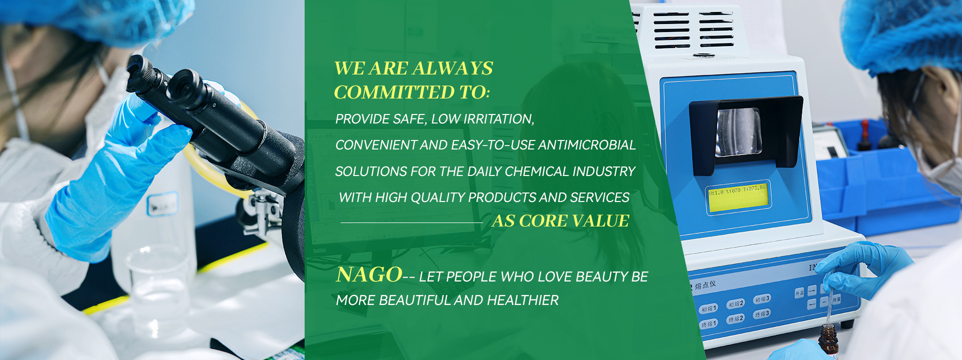 NAGO is committed to the development and application of new antimicrobial agents from natural sources, providing a safer and less irritating antimicrobial solution for the cosmetics industry, replacing the traditional anti-corrosion agents (mainly formaldehyde sustained release and isothiazolinone), which have strong irritation, sensitization or carcinogenic potential.